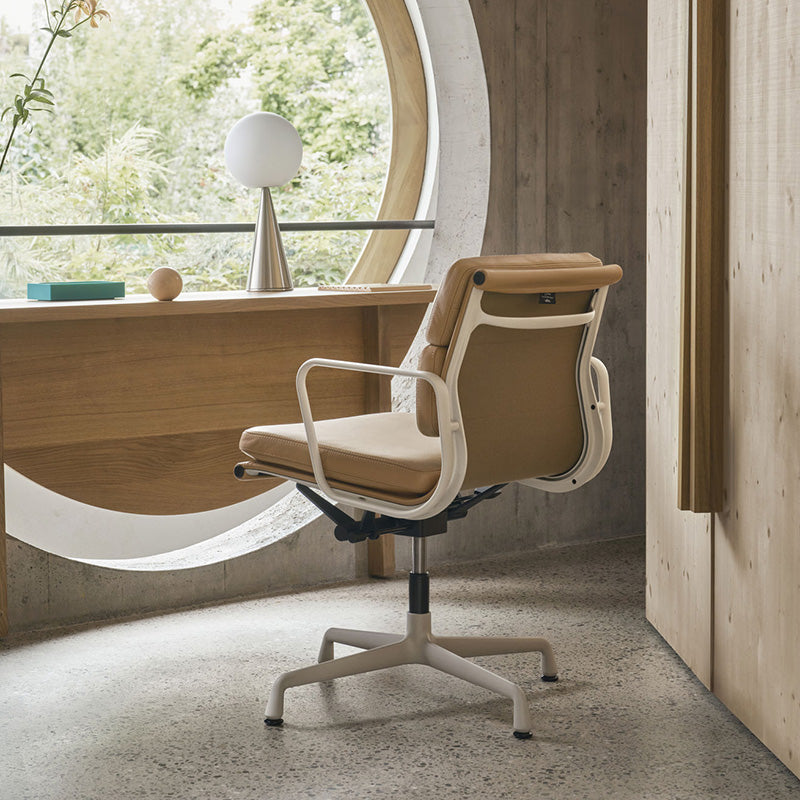 Vitra has also expanded the choice of colours for the powder coating of the Aluminium and Soft Pad Groups, in addition to the existing black version, the chairs are now also available in a beautiful dark Bordeaux and soft chalk coloured finish making them easier to integrate into home situations as well as use in a formal office.