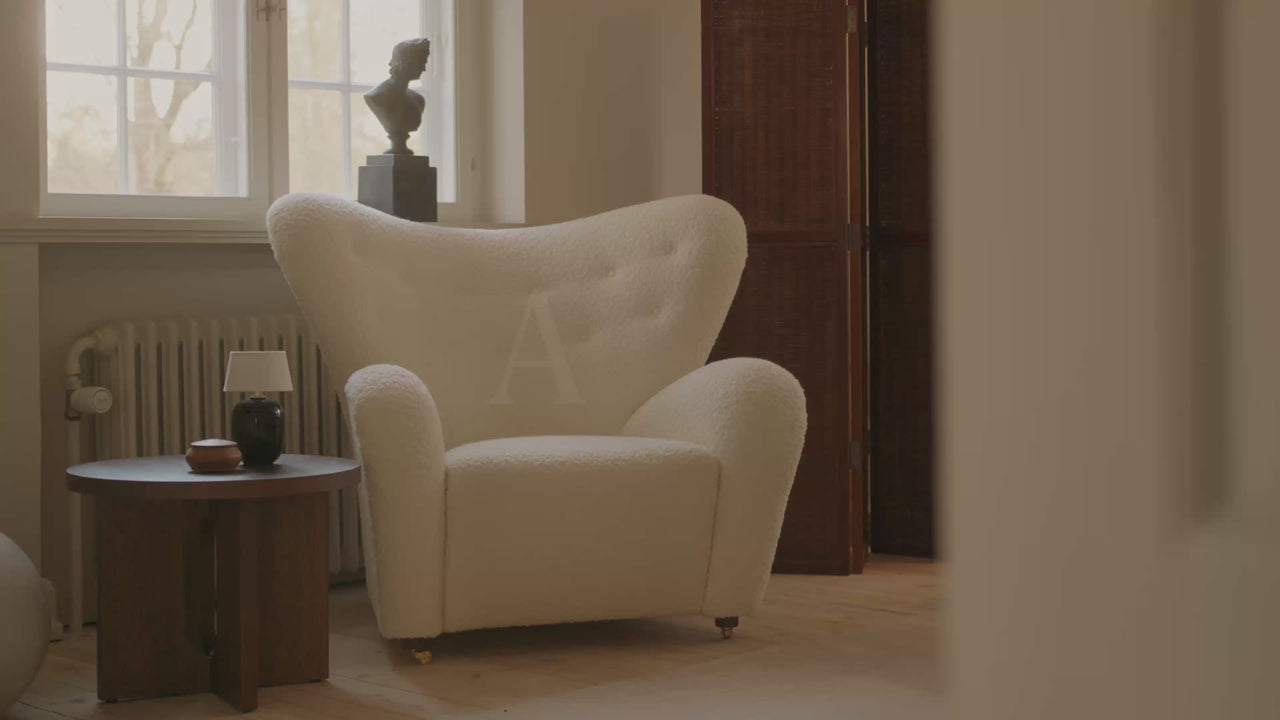 Originally designed in 1935 by Flemming Lassen and first unveiled at the Copenhagen Cabinetmakers’ Guild Exhibition that same year, The Tired Man is distinguished by its sculptural, streamlined form and inviting winged backrest. While emblematic of 1930s aesthetics, the voluminous yet minimalist chair remains a celebrated Danish design icon 90 years after its conception — an heirloom cherished across generations.