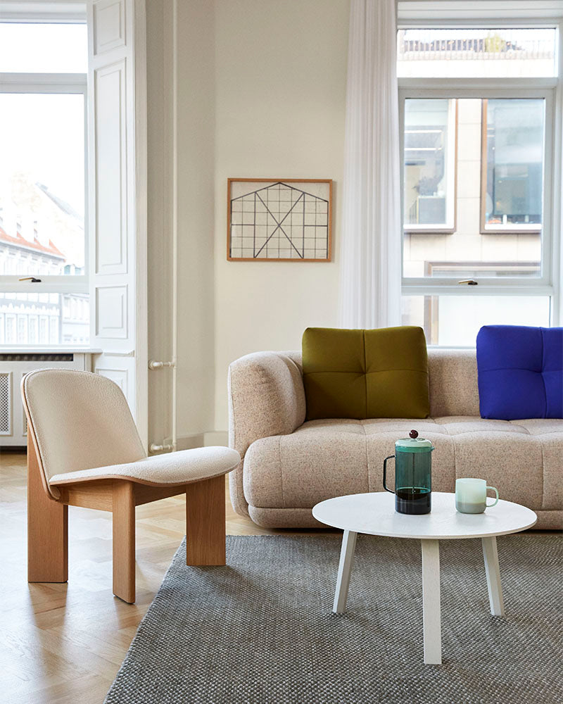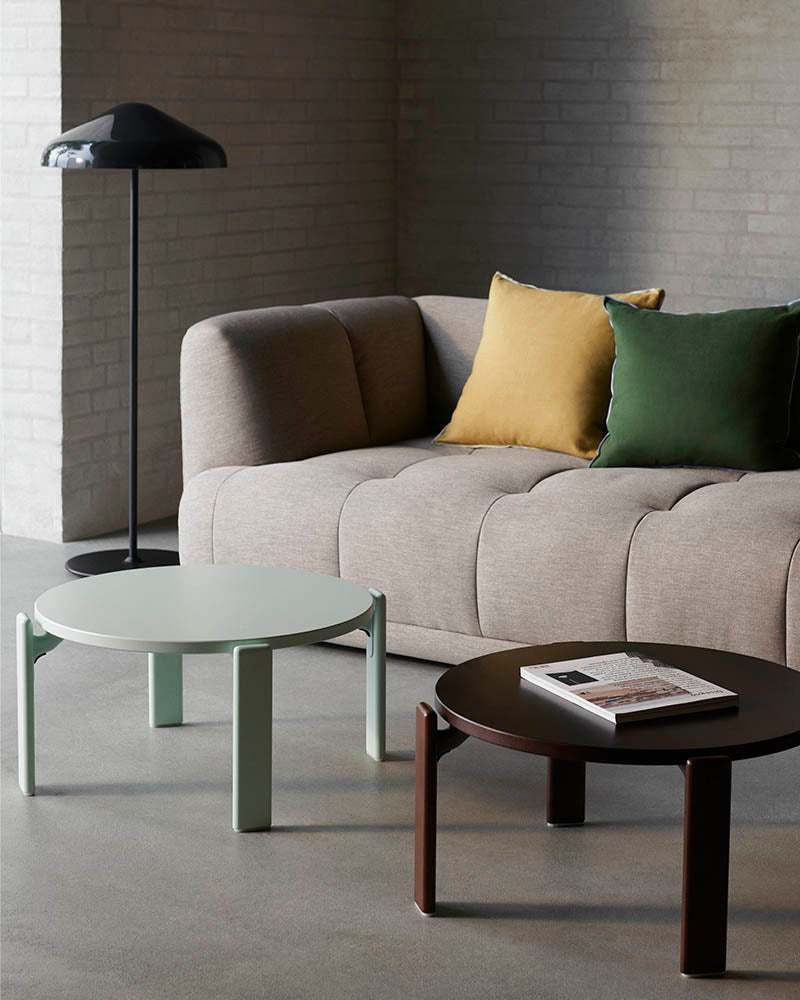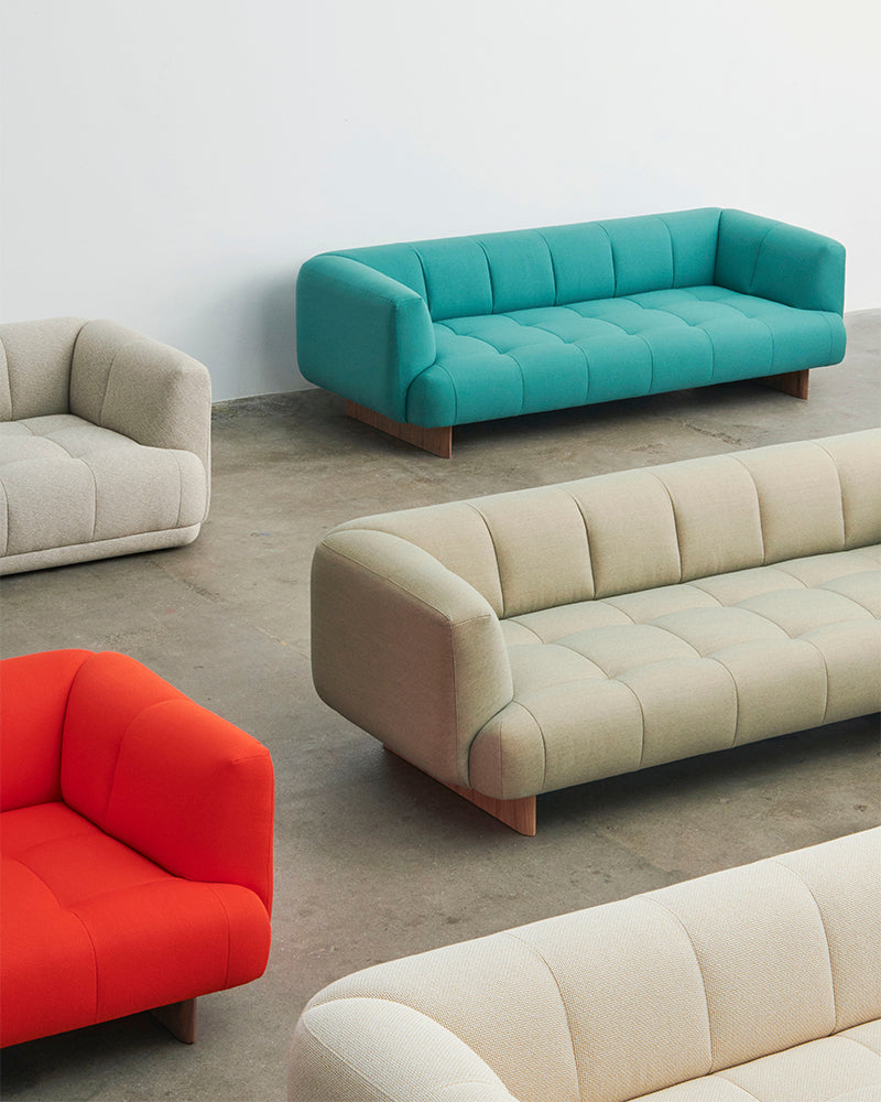 In continuation of HAY’s ongoing design collaboration with Doshi Levien, the multi-functional Quilton Sofa series has been expanded with new family members in the Quilton Lift. The design duo’s ‘quilted landscape sofa system’ has retained the distinctive generous dimensions and sculpted forms, with the new variants featuring solid wooden legs, elegantly lifting the sofa to meet the floor with a light, contemporary expression.