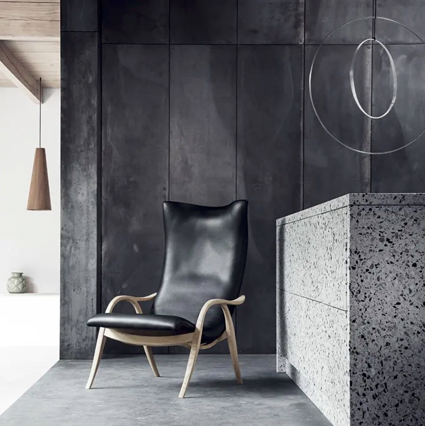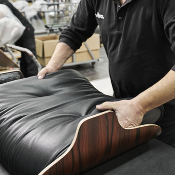Vitra's Leather Premium F is a smooth cowhide leather with a flat grain and fine top sheen. It is dyed-through, lightly pigmented and processed with a tanning agent extracted from olive tree leaves (a waste product of the olive harvest).