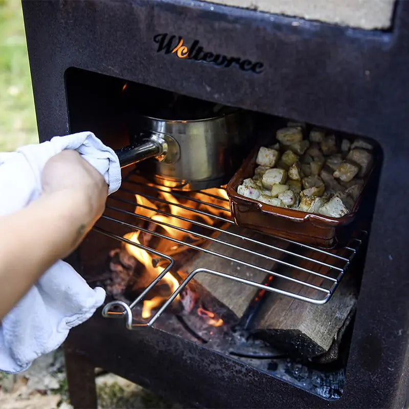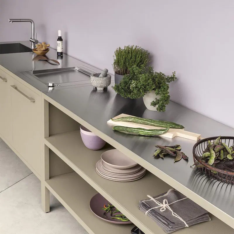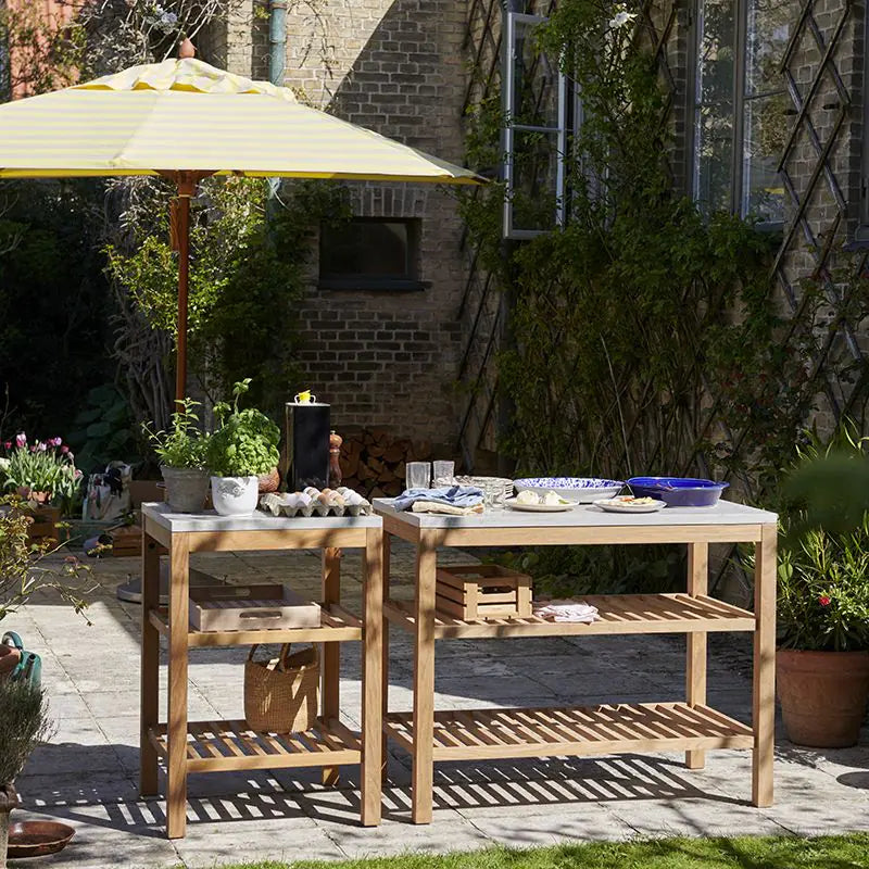 For a really sleek and contemporary outdoor cooking experience Fantin Frame Kitchens can be fitted with features like built-in grills, Barazza steel counters and sinks . The electrophoretic painting process prevents rust from forming and offers outstanding protection from the elements. But if you cannot accommodate a whole outdoor kitchen, you could create a grilling area with a Weltevree Outdooroven or BBQ and an outdoor storage bench. The Skagerak Pantry Module is a versatile work station. String also have a wide range of outdoor shelving units that can be used to create storage space for kitchen utensils, pots pans and dishes.