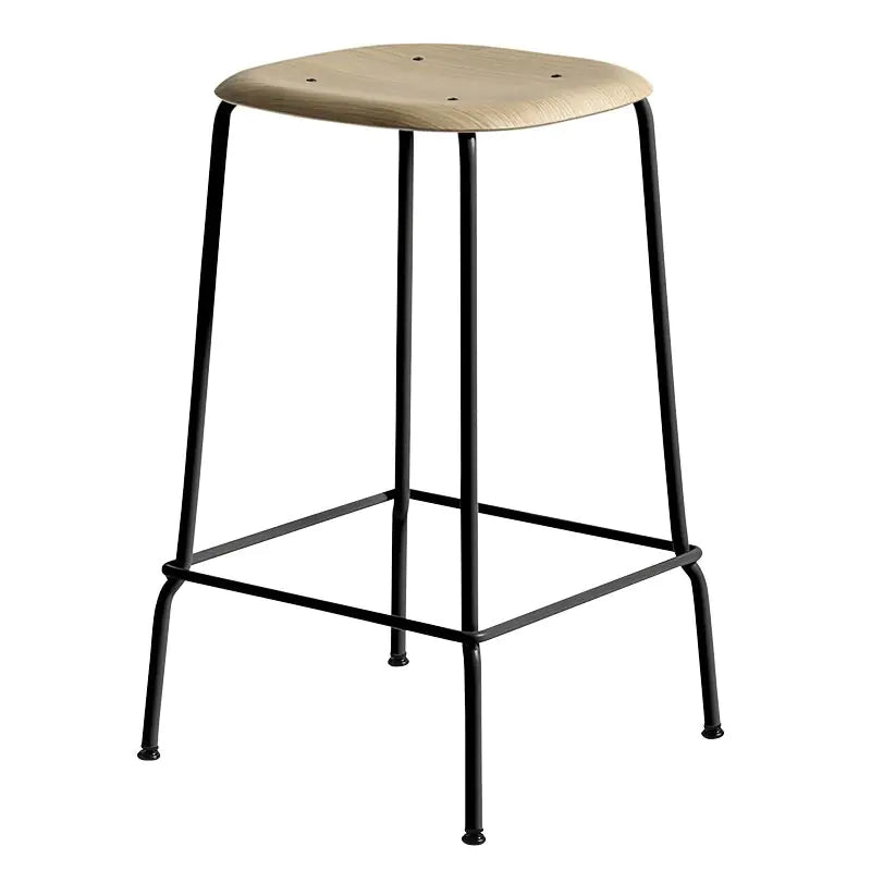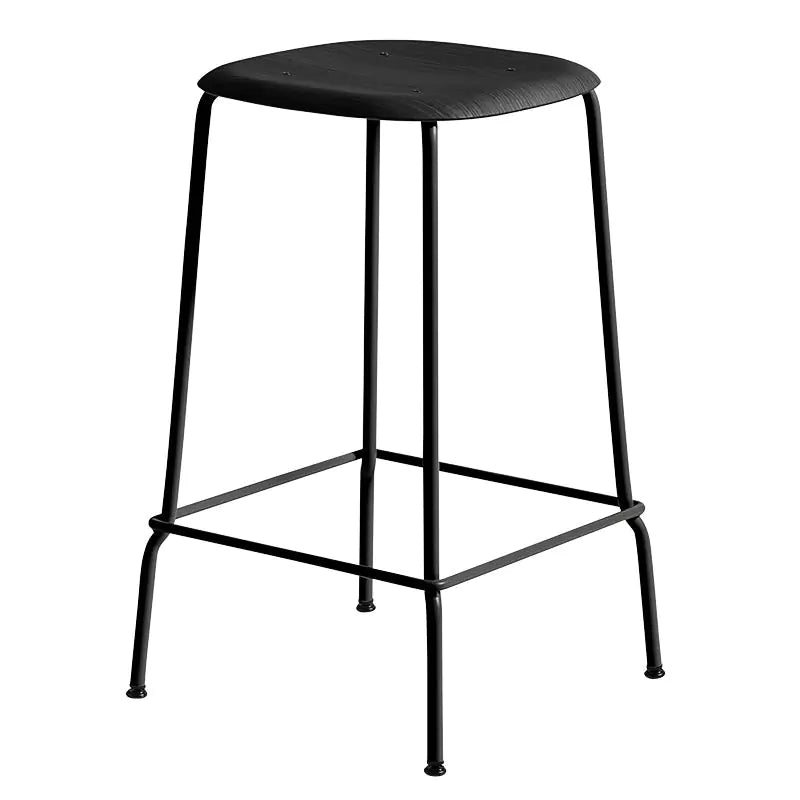 • Hay Soft Edge 80 Bar Stool Black Powder Coated Steel Base Black WB Lacquer Oak Seat