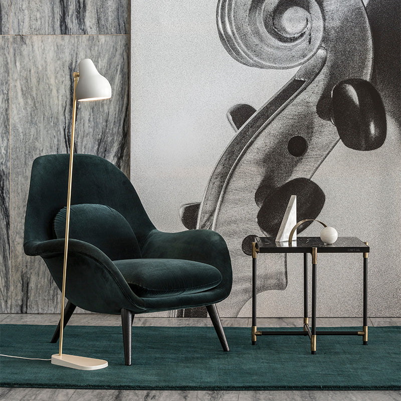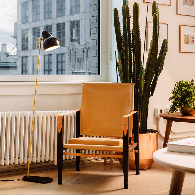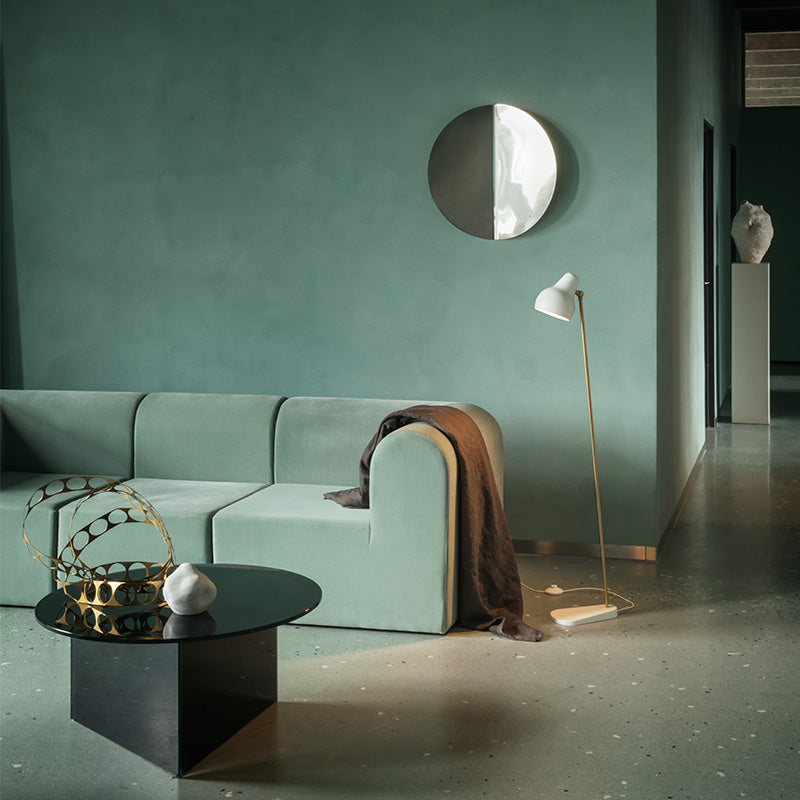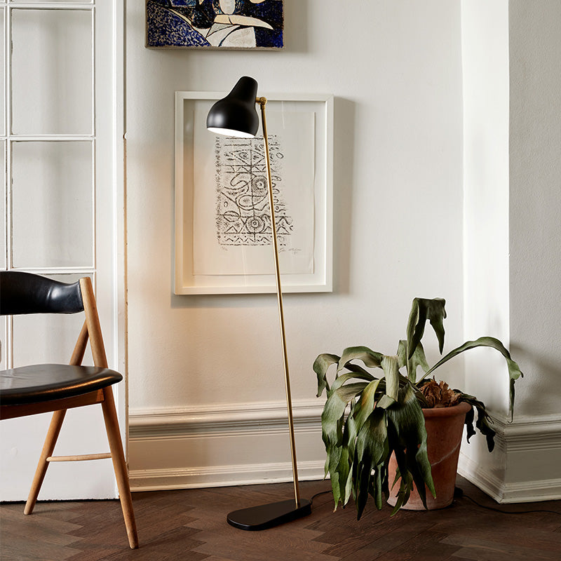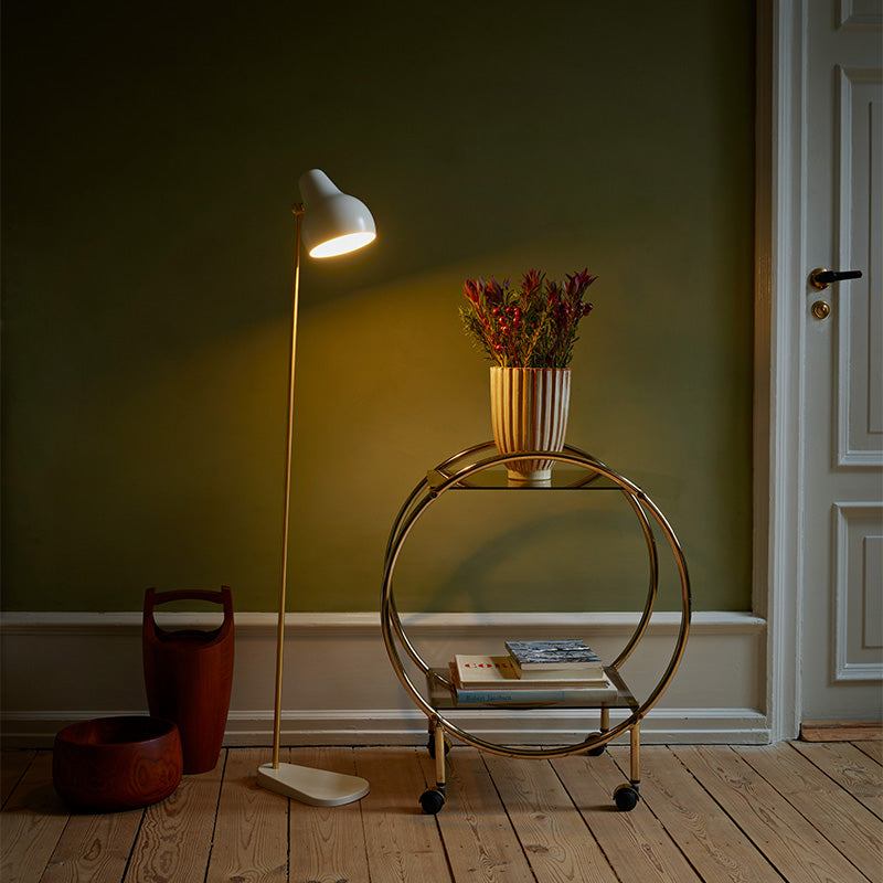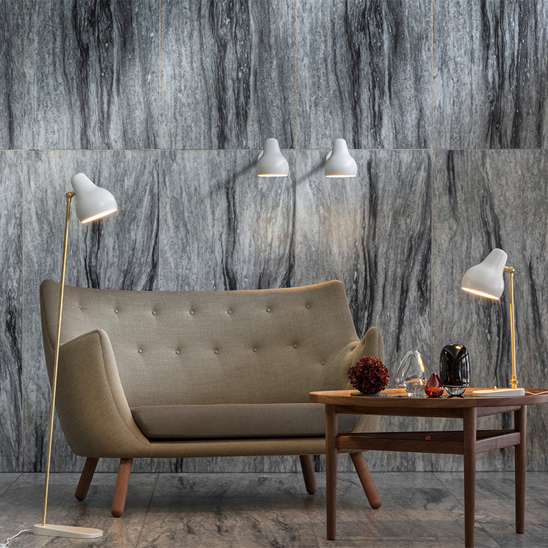 The VL38 family is being launched in its original design, where the lamp head is organically shaped, painted white and obliquely angled. The arms of the light fittings are made of brass, and all the lamps have been fitted with LED light sources to accommodate contemporary advances in light technology and energy efficiency.